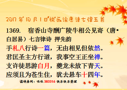 2017年10月1日快乐读唐诗七律五首