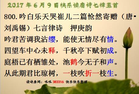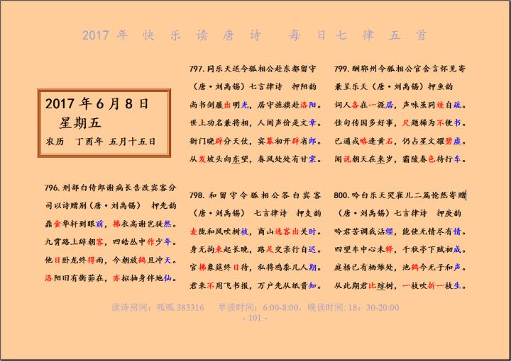 2017年6月9日快乐早读唐诗七律五首